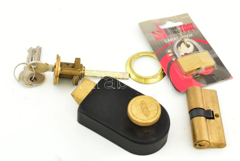 Tolózár, zárbetét, kis lakat, kulcsokkal
