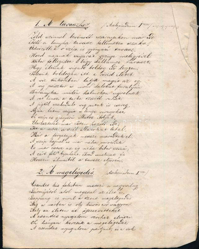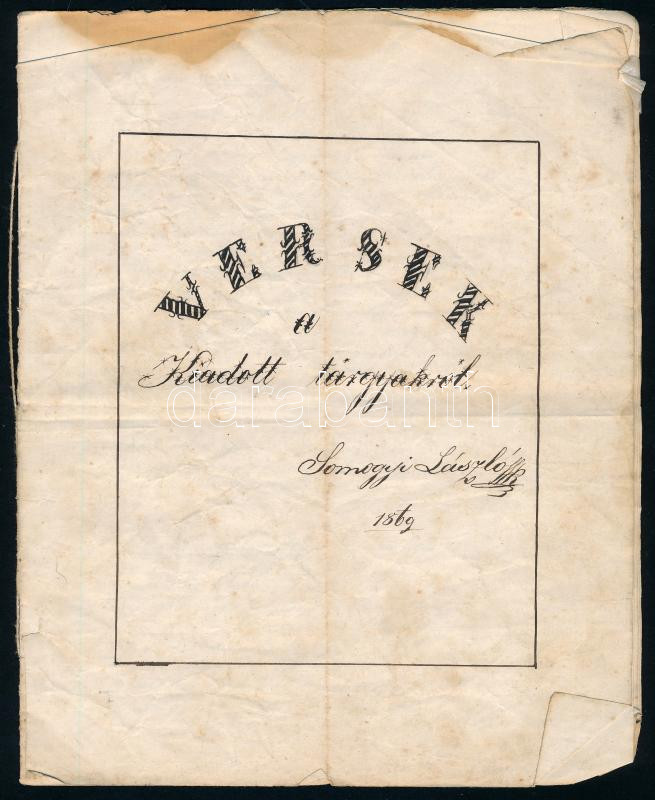 1869 Versek a kiadott tárgyakban Somogyi László. Kézzel írt verses kön...