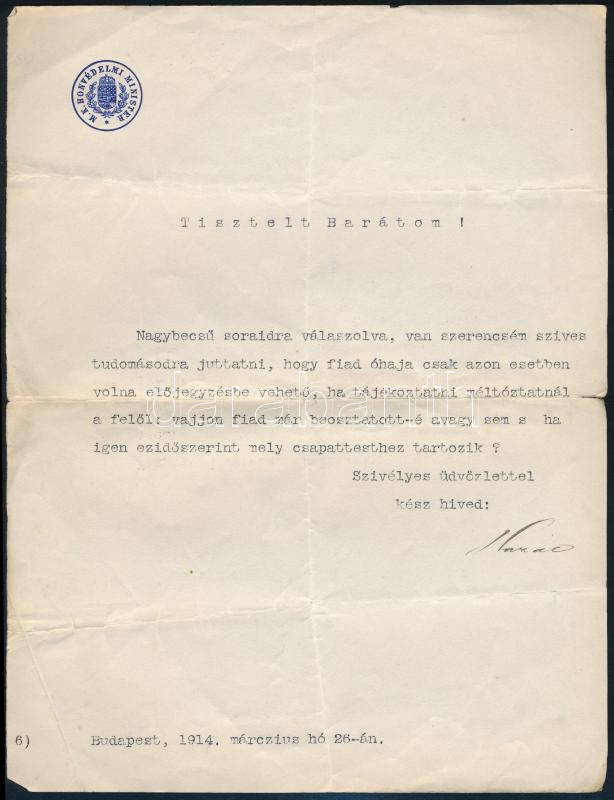 https://www.darabanth.com/en/445-Online-auction/445.0/Art-and-other-collectibles/Historical-documents-manuscripts~500021/1914-Bp-baro-Hazai-Samu-1851-1942-honvedelmi-miniszter-autograf-alairassal-ellatott-ge~II2944630