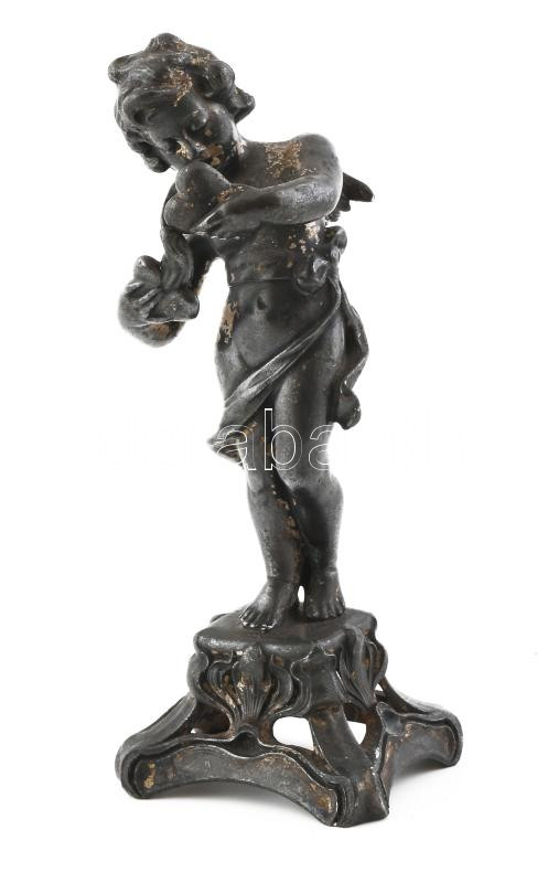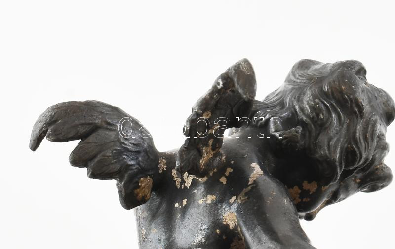 Kúpidő. Albert Kohler & Cie, szecessziós ón figura. Jelzett. XIX. sz. vége. 12 cm / Cupid. Albert Kohler & Cie. pewter statue. Marked. 12 cm