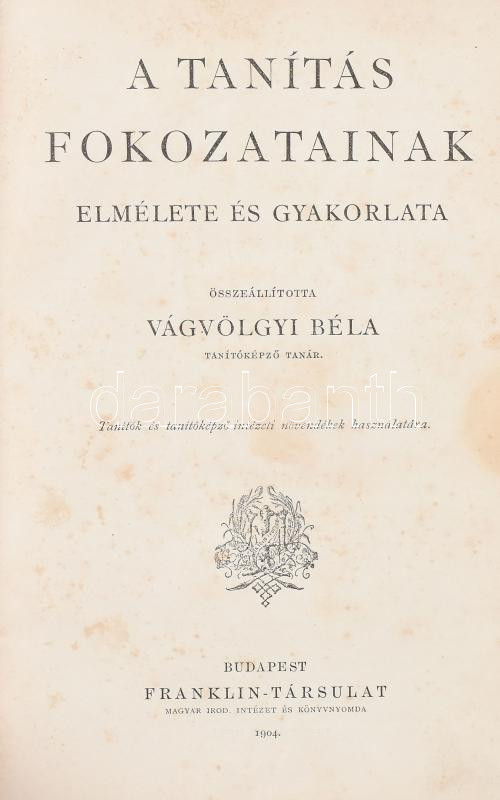 https://www.darabanth.com/en/445-Online-auction/445.0/Books/Books-Other-rarities~1500028/A-tanitas-fokozatainak-elmelete-es-gyakorlata-Osszeall-Vagvolgyi-Bela-Bp-1904-Frankl~II2938626