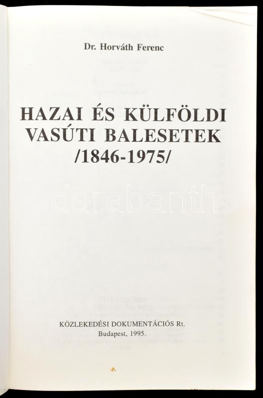 Horváth Ferenc: Hazai és külföldi vasúti balesetek. (1846-1975.) Vasút... https://www.darabanth.com/en/445-Online-auction/445.0/Books/Books-Railways-locomotives~1500020/Horvath-Ferenc-Hazai-es-kulfoldi-vasuti-balesetek-1846-1975-Vasuthistoria-Konyvek-Bp-~II2939013