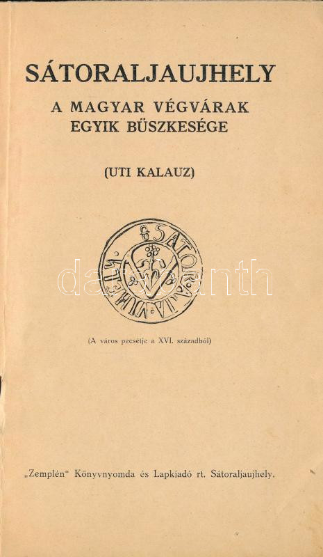 Sátoraljaújhely. A magyar végvárak egyik büszkesége. (Uti Kalauz.) Sátoraljaújhely, ,"Zemplén", 4+70+2 p. Fekete-fehér fotókkal illusztrált,valamint kihajtható térkép-melléklettel. Kiadói papírkötés