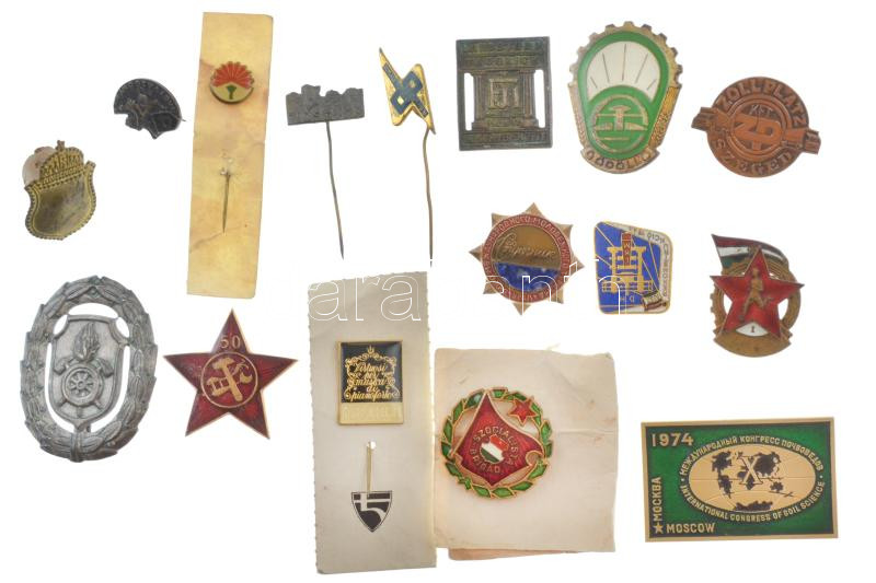 15db vegyes magyar és külföldi kitüntetés, jelvény a szocialista időszakból, közte zománcozott és műgyantás darabok T:vegyes