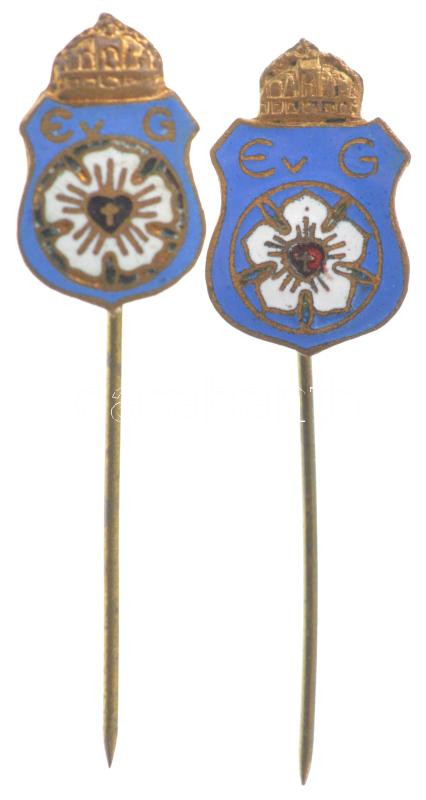 ~1930. "Budapest-Fasori Evangélikus Gimnázium" zománcozott bronz jelvény (2x) (18x12mm és 17x10,5mm) T:XF
