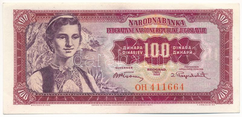 Jugoszlávia 1955. 100D "OH 411664" T:AU