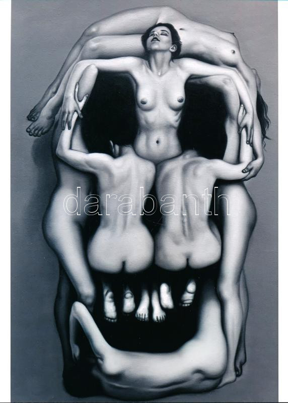 ,,Egy férfi koponyája", az aktkompozíció eredetileg fotórealisztikus stílusban készült olajfestmény, 1 db mai fotónagyítás, 21x15 cm