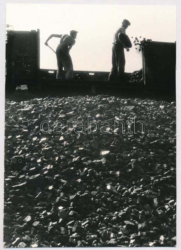 Description: 1968 Láng Tibor (1927-2014) veszprémi fotóművész feliratozott, vintage fotóművészeti alkotása, amelyet Salgótarjánban készített, a Népművelési Intézet által megrendezett központi fotós alkotótelepen (Vagonrakók), 22x15,2 cm