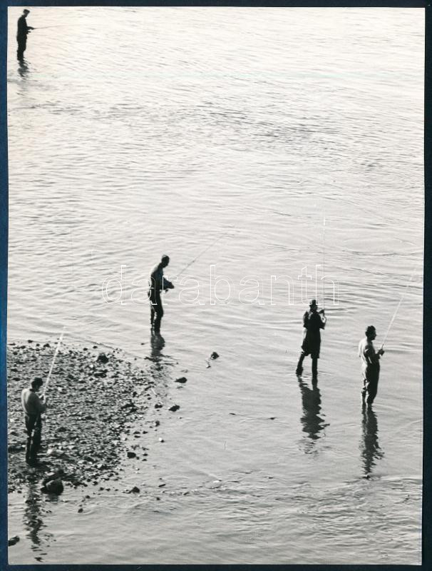 1974 "Pecázók a Dunán", sajtófotó, a hátoldalon feliratozott, pecsétte...