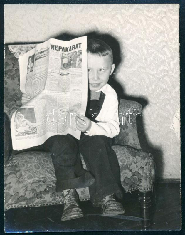 Katkó István: Újságolvasó kisfiú, fotó, 12×9 cm