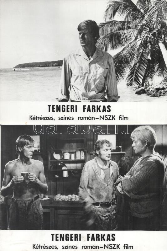 Description: cca 1985 előtt készült ,,Tengeri farkas" című román - NSZK film jelenetei és szereplői, 19 db vintage produkciós filmfotó ezüst zselatinos fotópapíron, a használatból eredő (esetleges) kisebb hibákkal, 18x24 cm