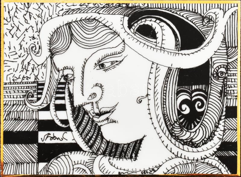 Hollóházi Szász Endre által tervezett porcelán kép, 11,5x8,5 cm, faker...