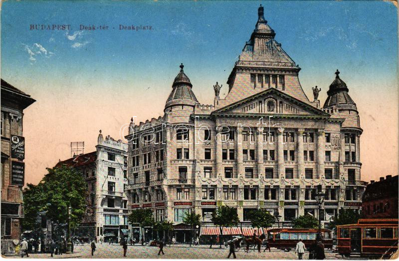 Budapest VI. Deák tér, Anker palota, villamosok, Ekker P., Polacsek, S...