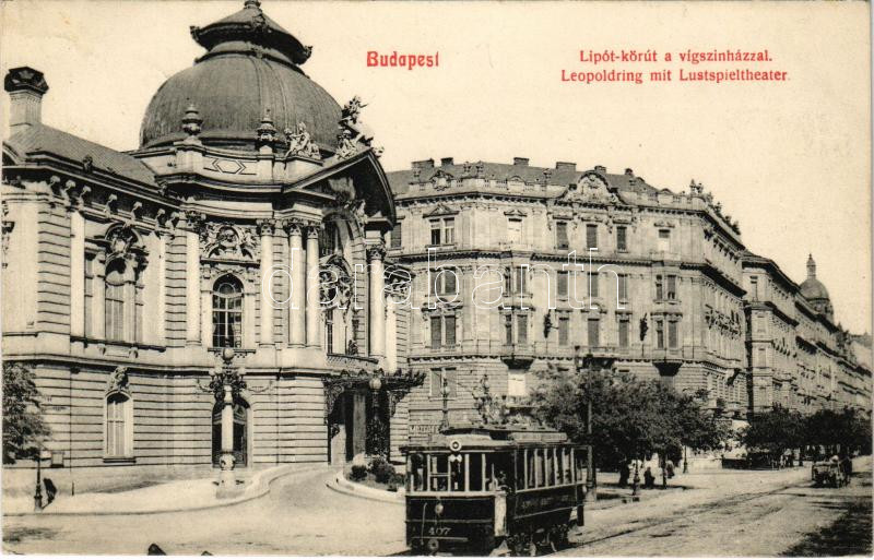 Budapest XIII. Lipót körút, Vígszínház, villamos, mozgófénykép színház, mozi