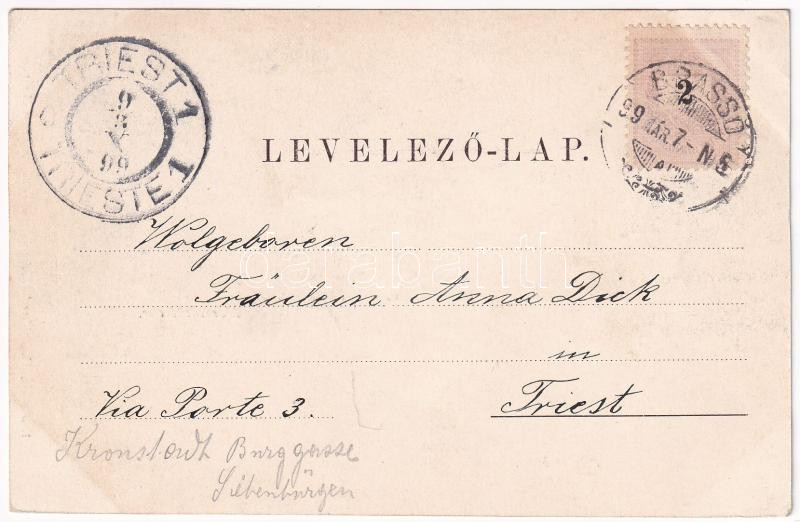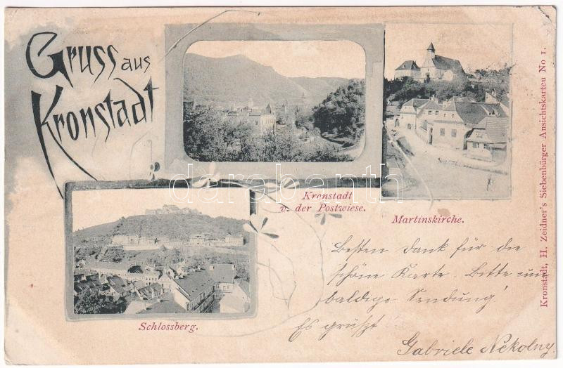 1899 (Vorläufer) Brassó, Kronstadt, Brasov; Postarét, Fellegvár, Mártonhegyi szász evangélikus templom / Postwiese, Schlossberg, Martinskirche / Livadia postei, Cetatea, church. H. Zeidner Art Nouveau, floral (fl)