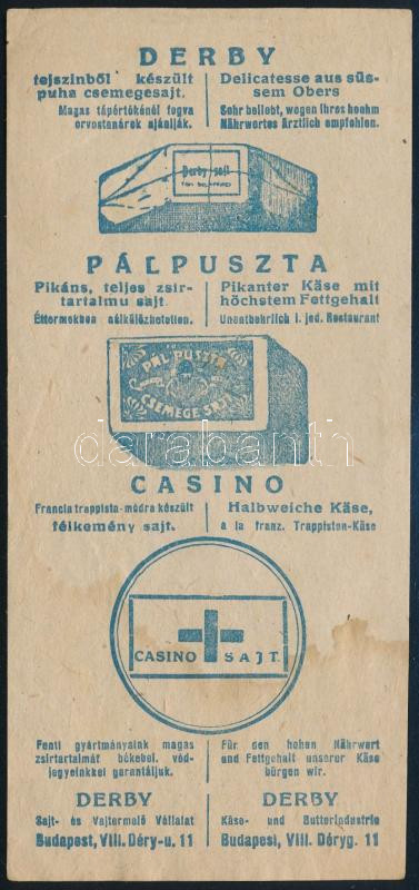 cca 1910-1920 Derby Sajt- és Vajtermelő Vállalat termékeit reklámozó s...