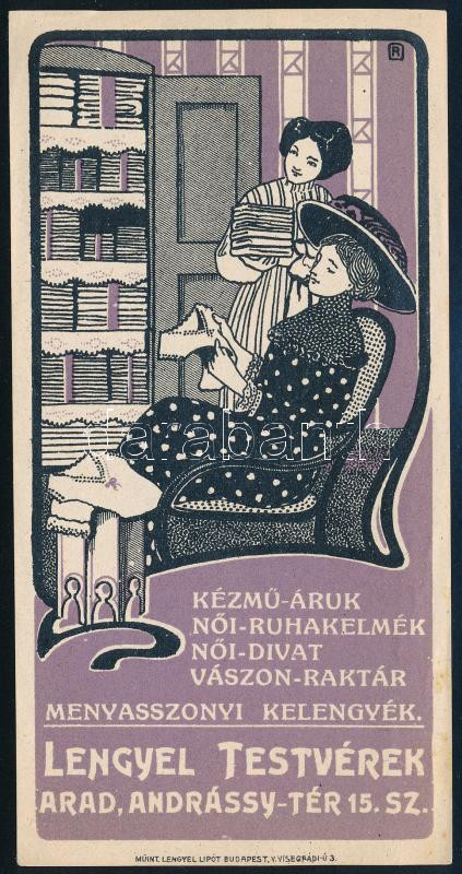 https://www.darabanth.com/en/446-Online-auction/446.0/Art-and-other-collectibles/Advertisement~500024/cca-1910-Lengyel-Testverek-Arad-Erdely-ruhakereskedese-szecesszios-szamolocedula-szep-C3~II2952717