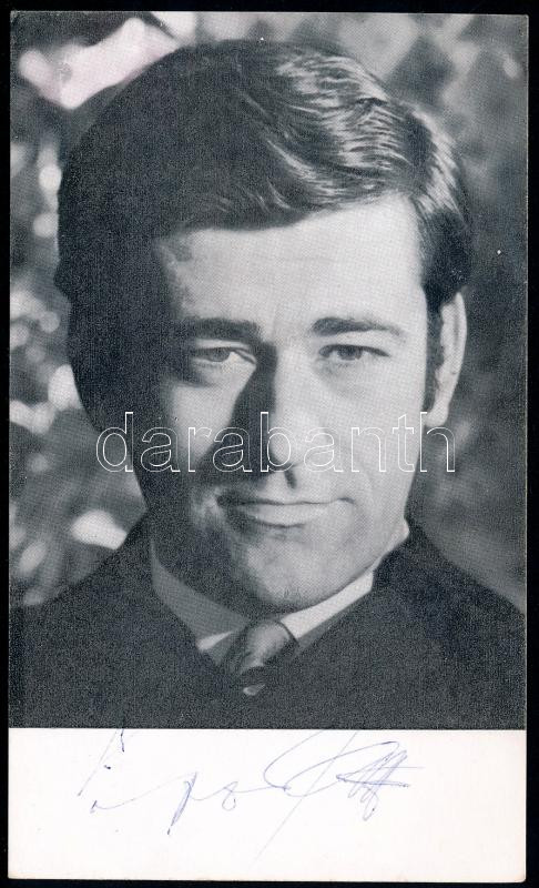 Koós János (1937-2019) táncdalénekes aláírása az őt ábrázoló képen