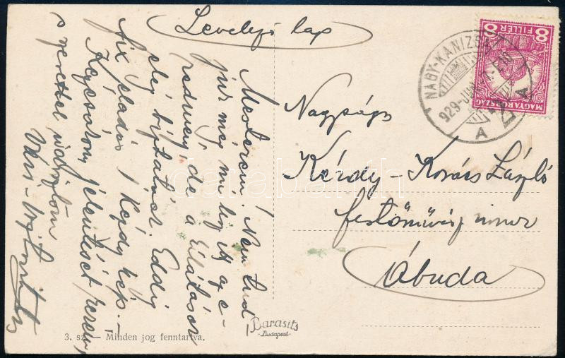 Description: 1929 Vári Vojtovits Zoltán (1890-1953) festőművész autográf sorai Kézdi-Kovács László (1864-1942) festőművésznek, amelyben röviden beszámol egy kiállításról és Kézdi-Kovács kép eladásáról. Vári Vojtovits Zoltán autográf aláírásával, nagykanizsai képeslapon.
