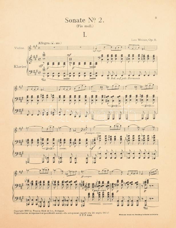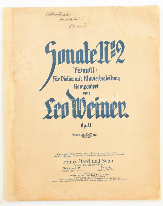 cca 1918 Weiner Leó: Sonate No. 2. (Fismoll) für Violine mit Klavierbe... https://www.darabanth.com/en/446-Online-auction/446.0/Art-and-other-collectibles/Historical-documents-manuscripts~500021/cca-1918-Weiner-Leo-Sonate-No-2-Fismoll-fur-Violine-mit-Klavierbegleitung-Kompniert-von--~II2954653