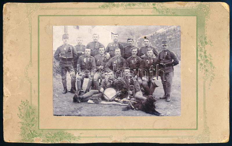 cca 1900 Katonai csoportkép, közte egy csendőr, képen lyukasztás nyoma...