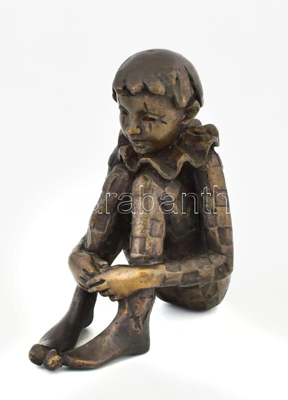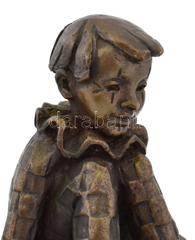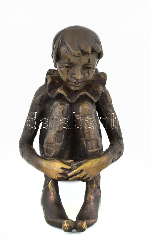 Kutas László (1936-): Üldögélő harlekin. Bronz szobor, jelzéssel, 50/2016 számozással, hibátlan, m: 11 cm