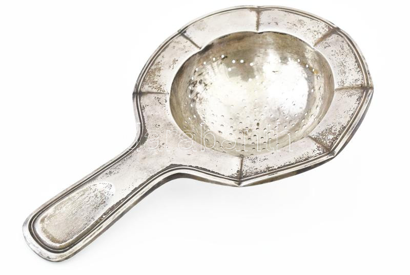 Ezüst(Ag) teaszűrő, jelzett, h: 13,5 cm, bruttó: 44 g