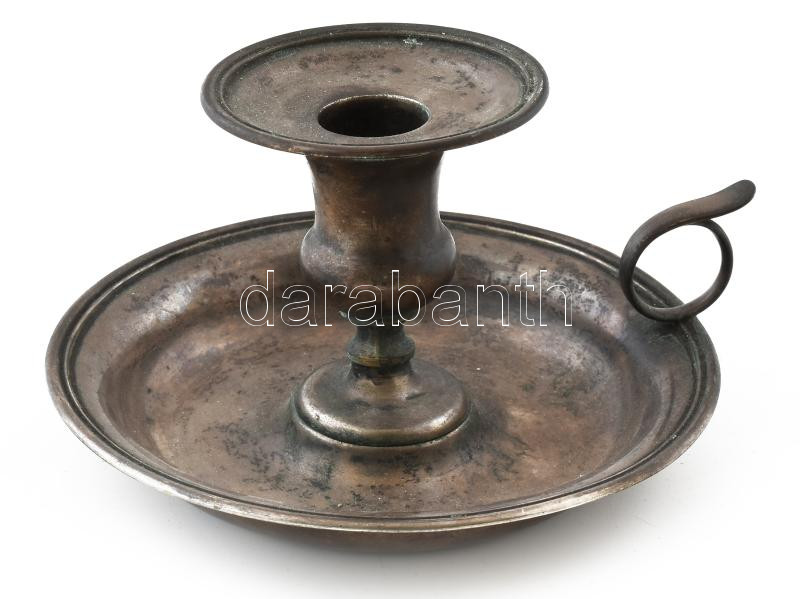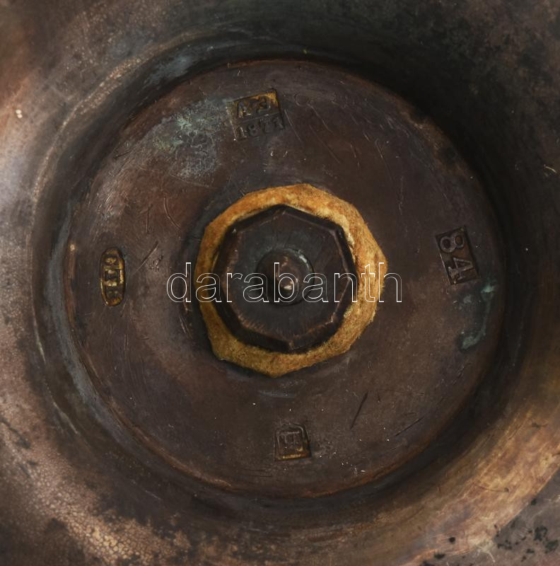 Litvánia, Riga, 1871, mesterjellel: Carl Theodor Beyermann: Ezüst (Ag) sétáló gyertyatartó, m: 8,5 cm, d: 15 cm, 273 g