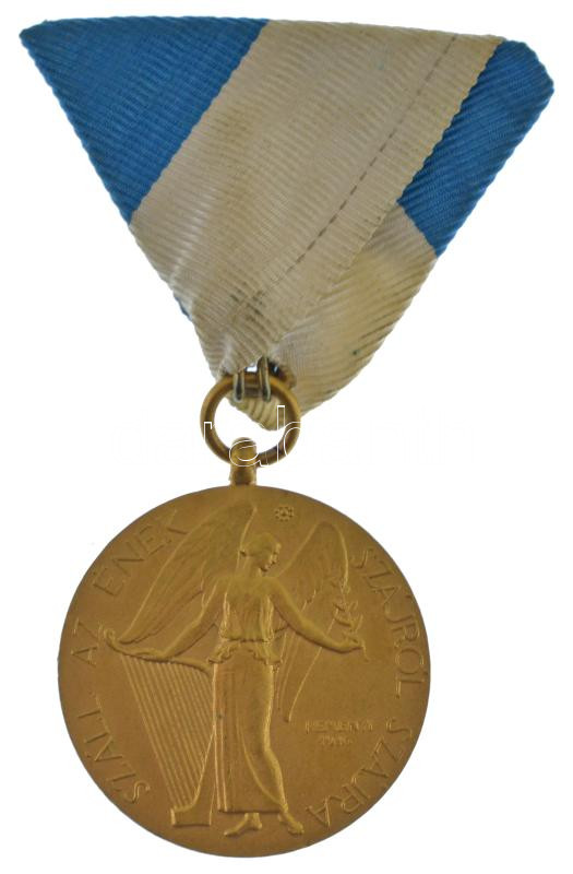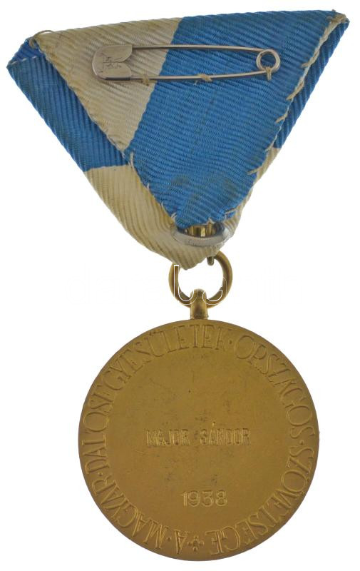 Reményi József (1887-1977) 1938. "Száll az ének szájról szájra / A Magyar Dalosegyesületek Országos Szövetsége" aranyozott bronz díjérem mellszalagon, hátoldalán "Major Sándor" névre szóló gravírozással (35mm) T:AU a mellszalag tűje letört, helyén biztosítótű található