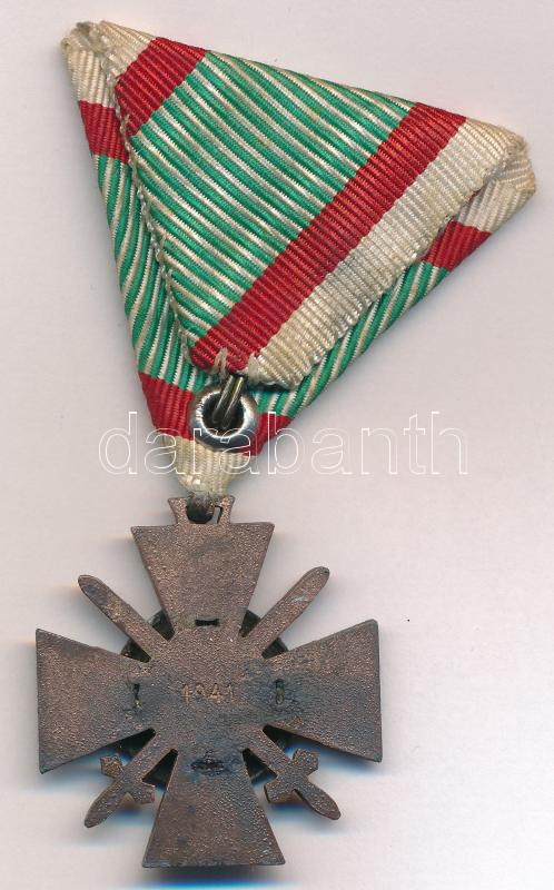 https://www.darabanth.com/en/446-Online-auction/446.0/Numismatics/Military~1500021/1943-Tuzkereszt-II-fokozata-oxidalt-hadifem-kituntetes-mellszalaggal-TXF--Hungary-1943-~II2948535