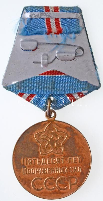 Description: Szovjetunió 1968. "50 éves a Szovjet Fegyveres Erők" sárgaréz kitüntetés mellszalagon T:2 patina