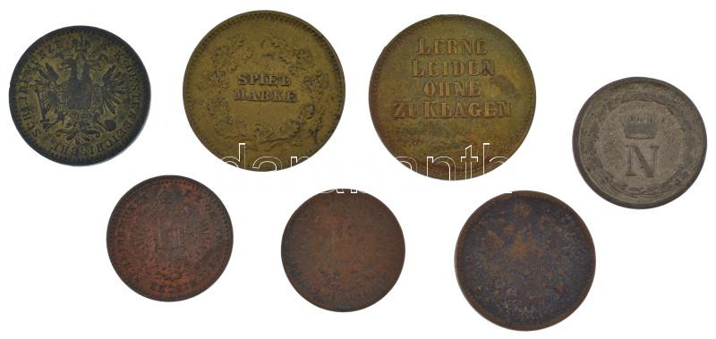 Description: Ausztria 1858M 5/10kr Cu + 1860A 5/10kr Cu + 1859V 1kr Cu + 1860A 1kr Cu + Olasz államok / Napóleon Királysága 1812M 10c billon + 2db sárgaréz zseton T:VF,F