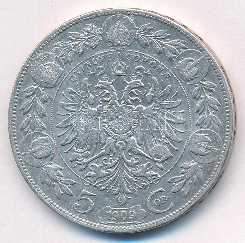 https://www.darabanth.com/en/446-Online-auction/446.0/Numismatics/Worldwide-silver-and-metal-coins~1500017/Ausztria-1909-5K-Ag-Ferenc-Jozsef-TVF--Austria-1909-5-Corona-Ag-Franz-Joseph-CVF--Krause-~II2946437