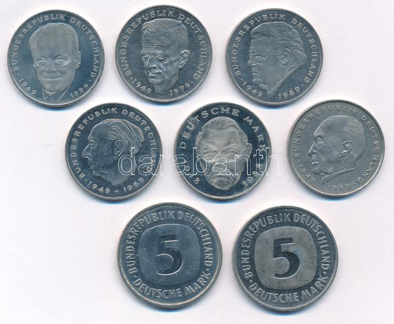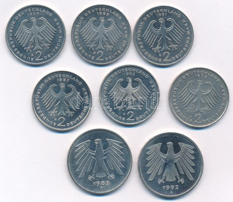 NSZK 1972-1994. 2M Cu-Ni (6xklf) forgalmi emlékérme + 1983F 5M Cu-Ni +...