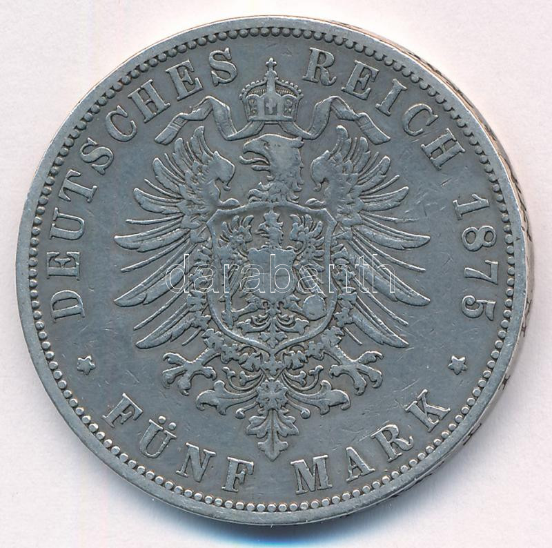 Német Államok / Poroszország 1875B 5M Ag "I. Vilmos" (27,56g) T:VF,F p... https://www.darabanth.com/en/446-Online-auction/446.0/Numismatics/Worldwide-silver-and-metal-coins~1500017/Nemet-Allamok-Poroszorszag-1875B-5M-Ag-I-Vilmos-27-56g-TVF-F-ph-German-States-Prussia-~II2946555
