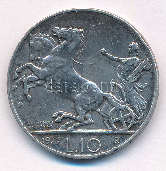 https://www.darabanth.com/en/446-Online-auction/446.0/Numismatics/Worldwide-silver-and-metal-coins~1500017/Olaszorszag-1927R-10L-Ag-III-Viktor-Emanuel-TXF-ph-Italy-1927R-10-Lire-Ag-Vittorio-Emanuele-~II2948441