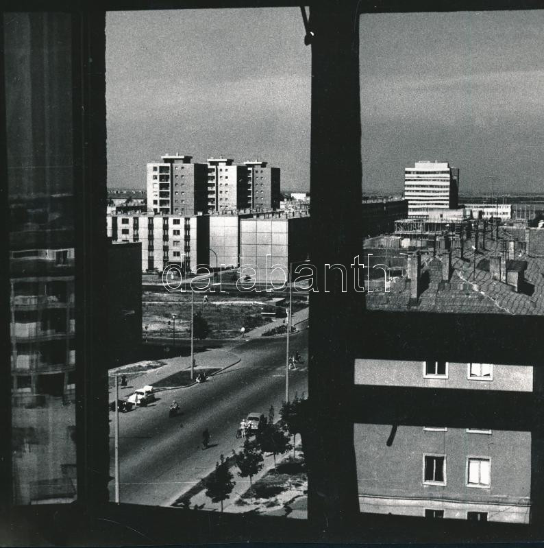 1970 Gebhardt György (1910-1993) budapesti fotóművész ,,Dunaújváros" című vintage fotóművészeti alkotása, feliratozva, ezüst zselatinos fotópapíron; a kép a Népművelési Intézet által, Dunaújvárosban megrendezett központi fotós alkotótelep (eredeti fotókat tartalmazó) albumából származik, 17,3x17,5 cm