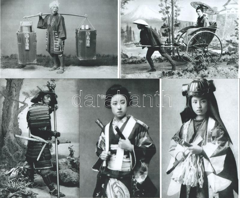 cca 1890 Kerny István (1879-1963) budapesti fotóművész hagyatékából régi japán felvételek, 5 db modern nagyítás a csereképek gyűjteményéből, 15x10 cm