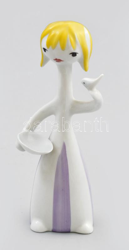 Hollóházi madaras lány, jelzett, hibátlan, m: 15 cm