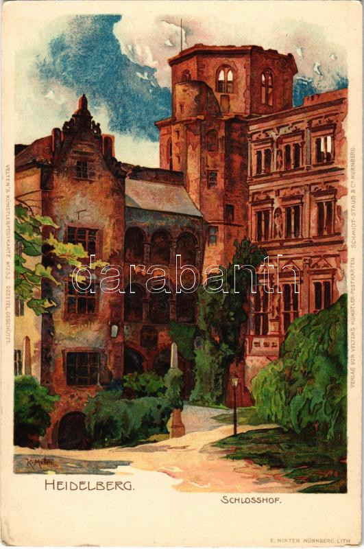 Heidelberg, Schlosshof / castle, courtyard. Velten's Künstlerpostkarte No. 253. litho s: K. Mutter (EK)