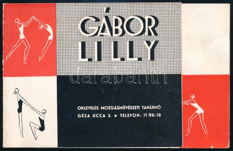 cca 1930 Gábor Lily mozgásművész art deco reklámlapja, kihajtható