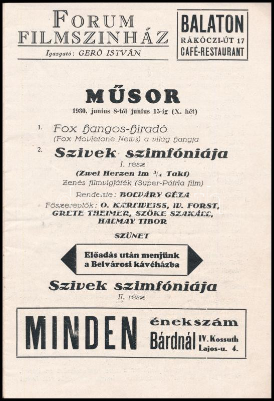 1930 Forum Revü, a Forum Filmszínház műsorújsága