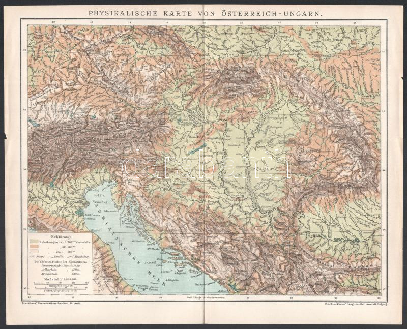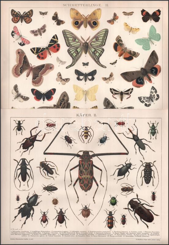 Description: cca 1890-1900 össz. 14 db klf. témájú színes térkép (Osztrák-magyar monarchia politikai áttekintő és domborzati térképe) és illusztráció (gombák, bogarak, bélyegek, kitüntetések, pillangók stb.) a Brockhaus Konversations-Lexikon 14. kiadásából. Nyomat, papír. 21x27 cm