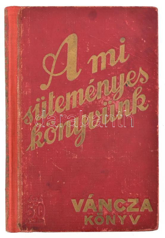 A mi süteményes könyvünk. Váncza könyv. Bp.,1936, Váncza és Társa. Tizennegyedik, háromszorosra bővített kiadás. Kiadói egészvászon kötés, előzéklap, címlap és néhány lap restaurált, előzéklapon és címlapon tollas és ceruzás feljegyzésekkel, néhány kevés lap szélén apró szakadásokkal, kopottas állapotban.