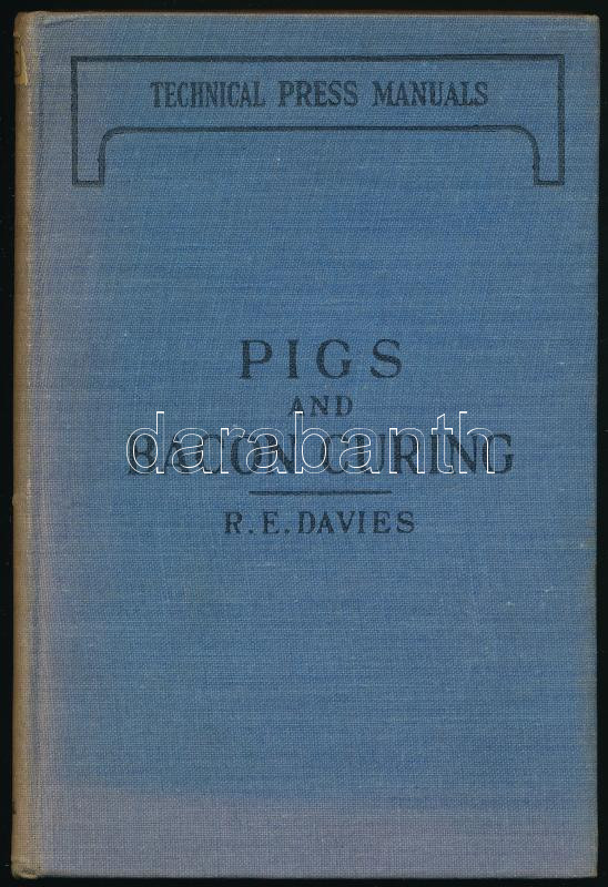 Description: R. E. Davies: Pigs and bacon curing. [Sertés és szalonna pácolás.] Technical Press Manuals. London, 1931, The Technical Press Ltd., XIV+109+1 p.+12 t. Angol nyelven. Second edition. Kiadói egészvászon-kötés.