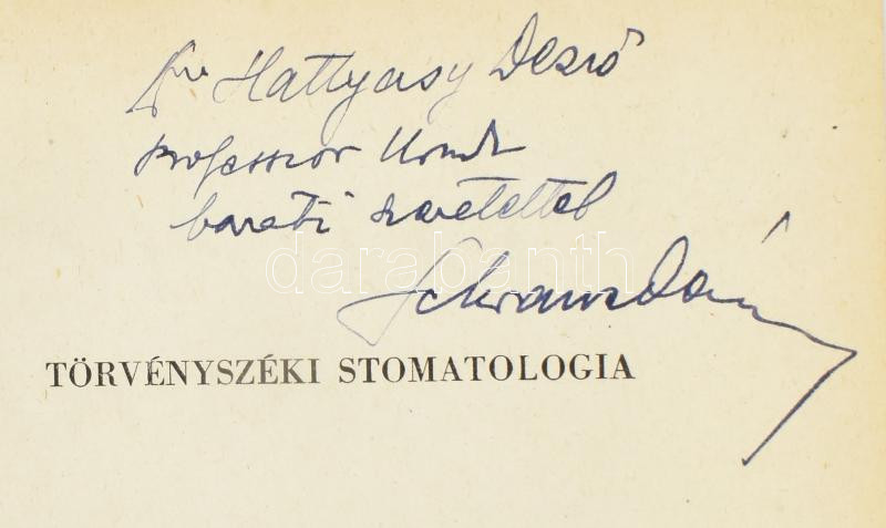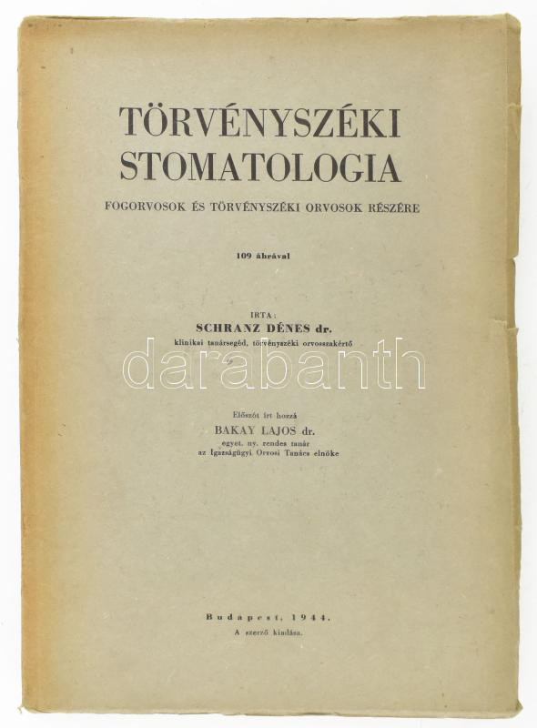 Dr. Schranz Dénes: Törvényszéki stomatológia. Fogorvosok és törvényszé... https://www.darabanth.com/en/447-Online-auction/447.0/Books/Books-Natural-sciences-Medicine~1500017/Dr-Schranz-Denes-Torvenyszeki-stomatologia-Fogorvosok-es-torvenyszeki-orvosok-reszere~II2961389
