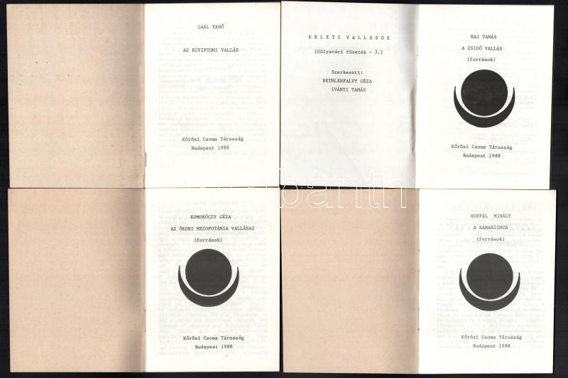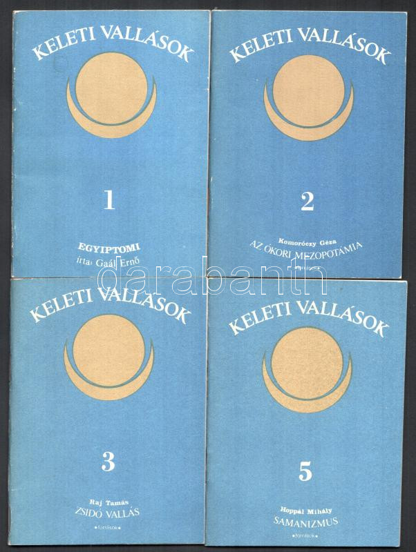 Keleti Vallások sorozat 4 füzete: Gaál ErnÅ‘: Az egyiptomi vallás; Komoróczy Géza: Az ókori Mezopotámia vallásai; Raj Tamás: A zsidó vallás; Hoppál Mihály: A samanizmus. Bp., 1988, KÅ‘rösi Csoma Társaság. Kiadói tűzött papÃrkötés.