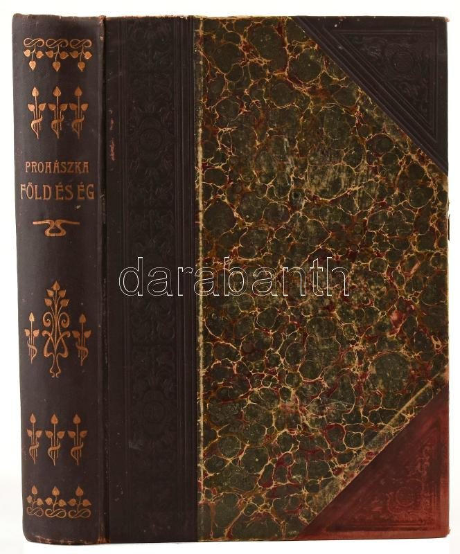 Description: Prohászka Ottokár: Föld és ég. Kutatások a geológia és teológia érintkező pontjai körül. Esztergom, 1906, Buzárovits Gusztáv. Kiadói félvászon kötés, kopottas állapotban.