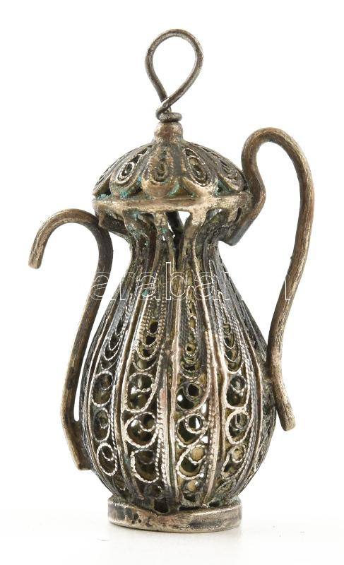Ezüst (Ag) kanna formájú filigrán medál, jelzés nélkül, 6 g, m: 3 cm