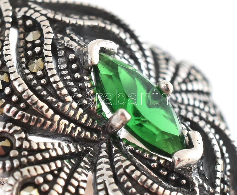 Ezüst (Ag) zöld köves gyűrű, jelzett, m: 60. bruttó:9,32g